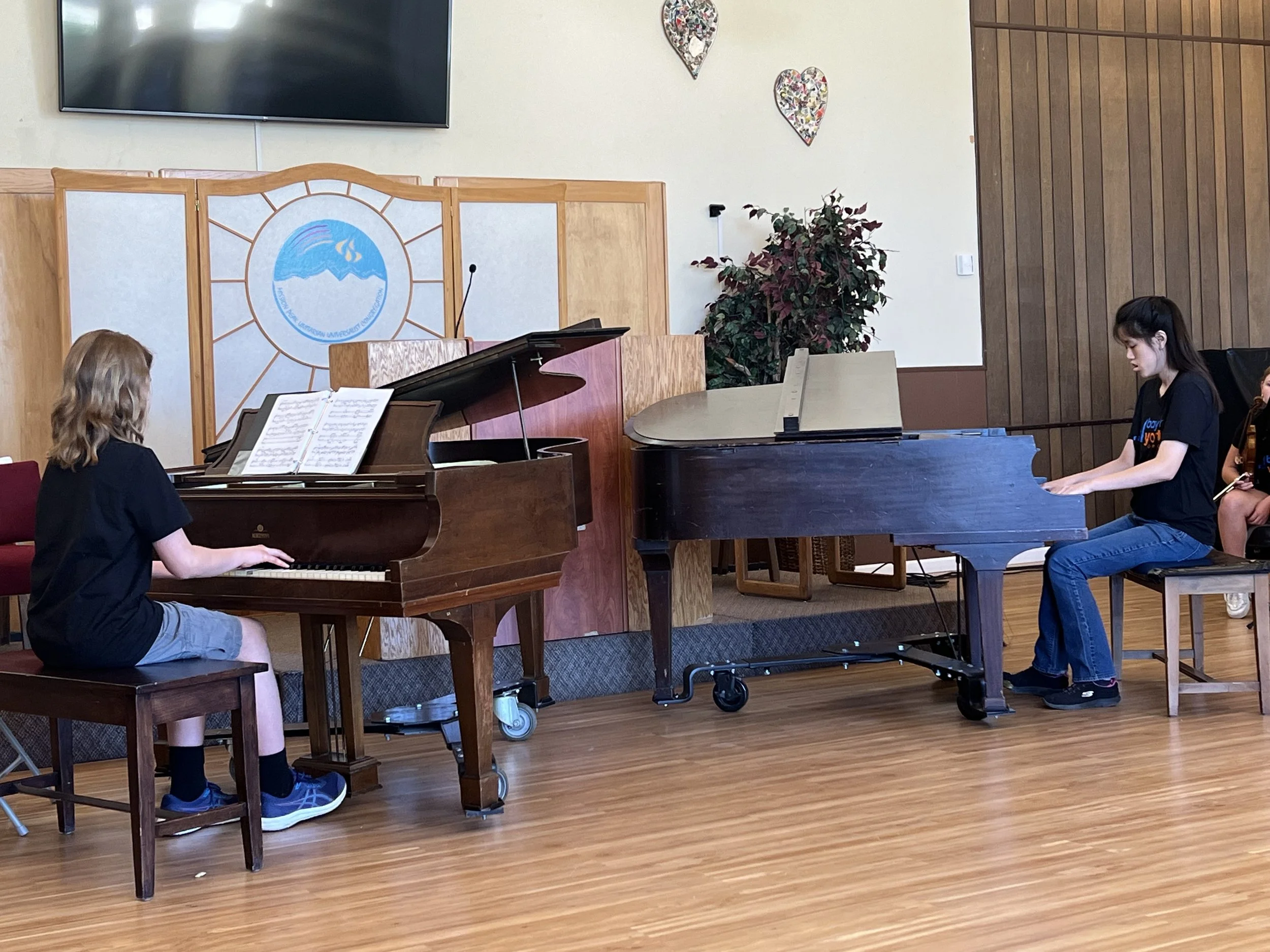 Two of Judy’s special needs students participated in the concert: Ansel, who did a great job joining the ensemble on violin for Rondeau by Mouret; and Alice, who performed beautifully, along with Harlan, in a two-piano rendition of the gorgeous Var. 18 of Rhapsody on a theme by Pagannini by Rachmaninoff.